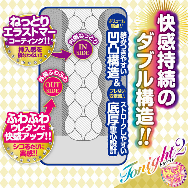 前作「トゥナイト」に続き、肉厚なふわふわウレタンが包み込む極ふわverのオナホ「トゥナイト2」が登場。ねっとりとした挿入感を演出するエラストマーコーティングに加えて、柔らかなウレタンの2層構造!絡みつく凹凸構造&安定感のある底圧重心設計が快感を高める♪イラストパッケージは人気絵師「みな本」氏◎高品質な日本製、ローション付