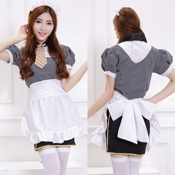 - :Mサイズ(平置き):トップスB43cm・着丈51cm・肩幅43cm・袖丈19cm スカート丈52cm・W32〜38cm セット内容:トップス(サイドファスナー)、スカート(ウェストゴム入り・背面ファスナー、パニエ一体型)、エプロン、カチューシャ、ネクタイ(ゴムバンド仕様)